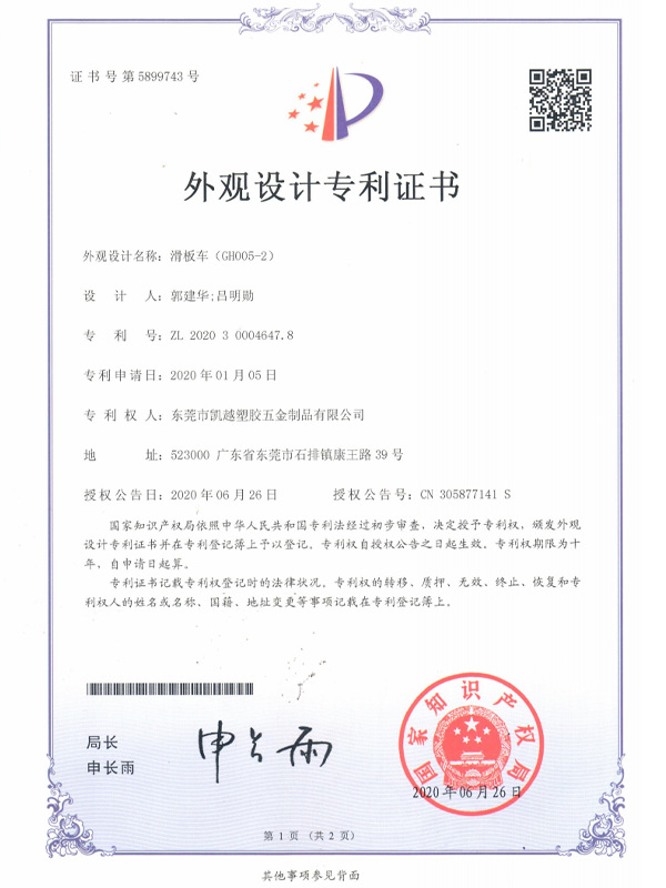 三合一平衡车外观设计证书